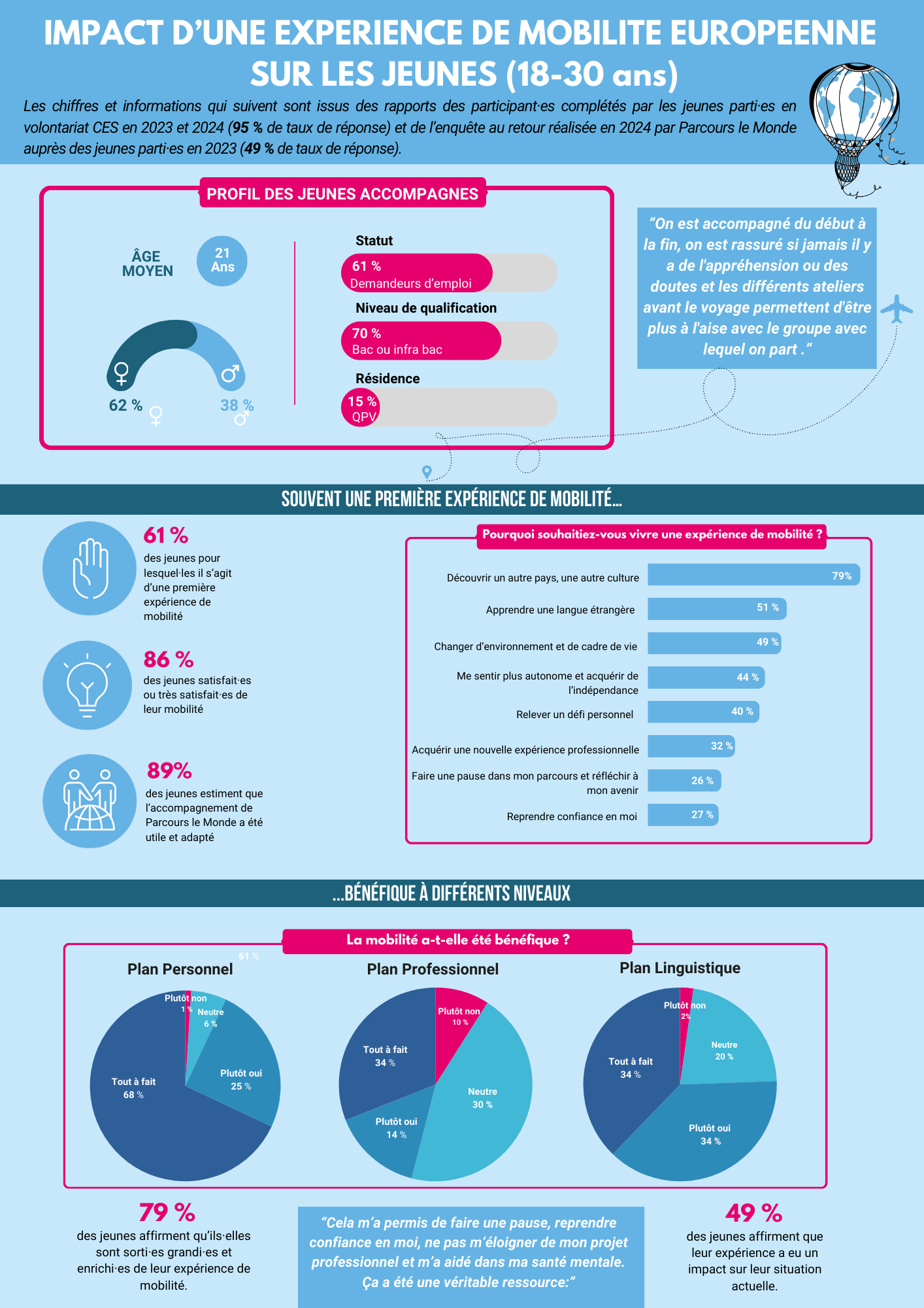✓ En tant qu’association spécialisée dans la mobilité internationale des jeunes, Parcours le Monde Sud Ouest propose un parcours d’accompagnement personnalisé et gratuit avant, pendant et après une expérience de mobilité.
